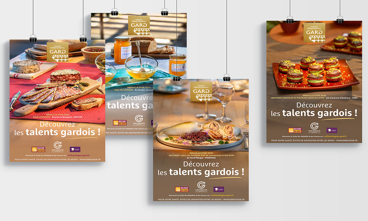 Les visuels de cette campagne de communication ont été sélectionnés parmi la liste des produits médaillés d’or, présentés lors du concours Gard Gourmand.