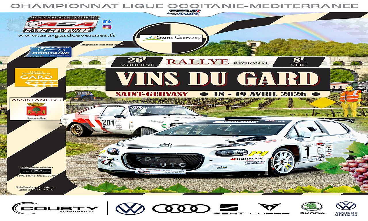 26ème Rallye régional des Vins du Gard & VHC organisé par l’ASA Gard Cévennes, ligue Occitanie Méditerranée. Venez voir les automobilistes concourir !