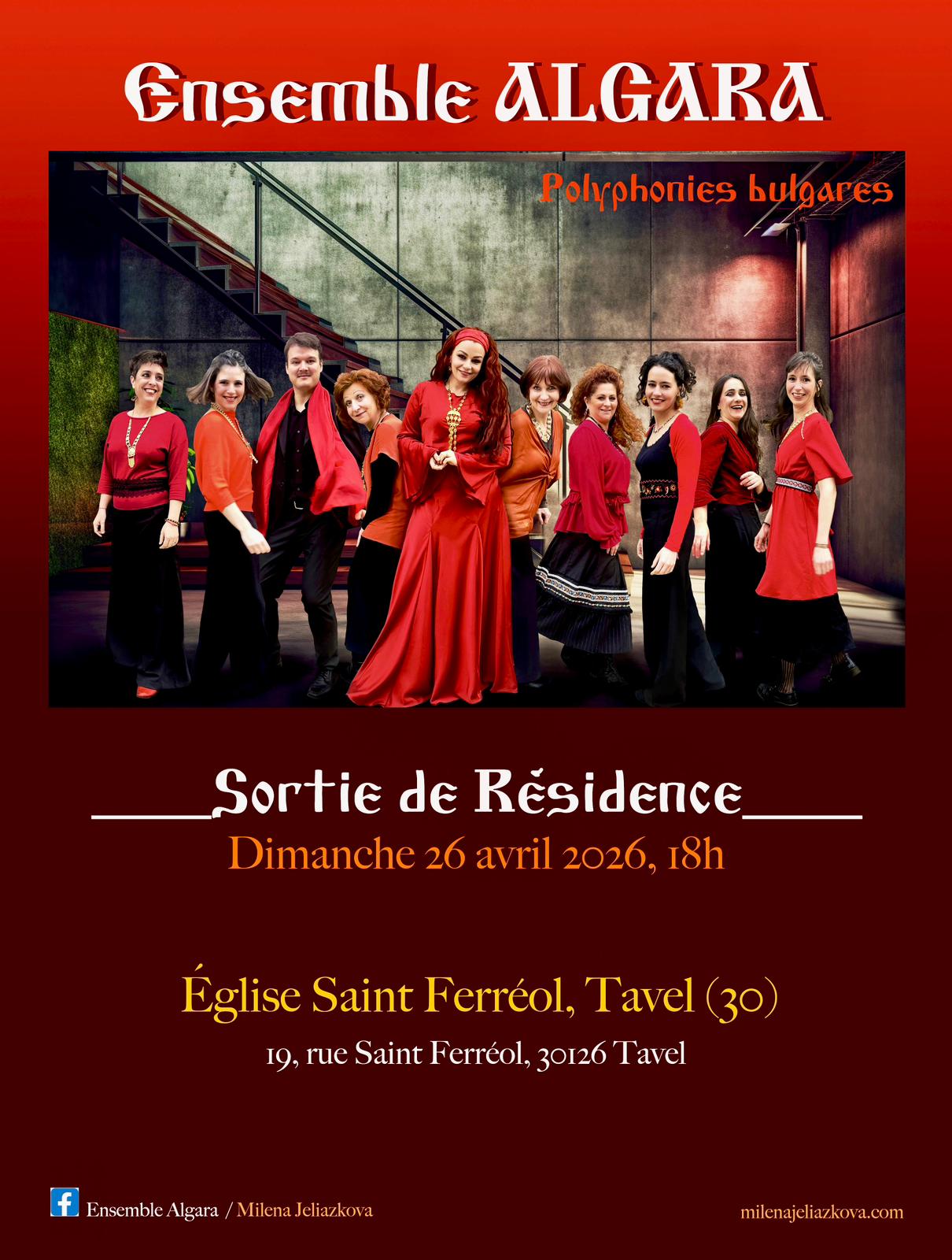 L’Ensemble ALGARA, dirigé par Milena Jeliazkova, puise ses chants dans le riche répertoire traditionnel et liturgique bulgare. Les chants profanes côtoient louanges et prières orthodoxes, les histoires de succèdent, tout à tour poignantes et joyeuses.