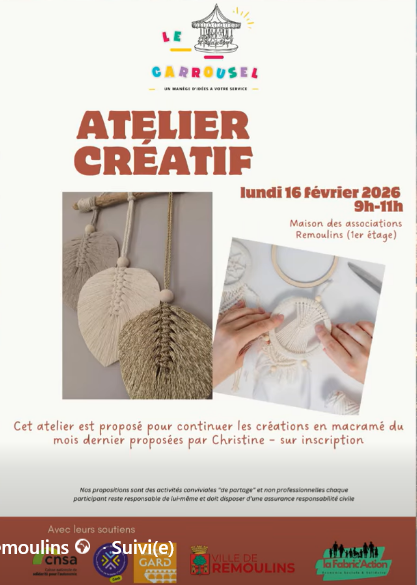 Distractions et loisirs, Initiation / découverte dans le cadre d'un événement, Remoulins:Atelier créatif - Créations en Macramé