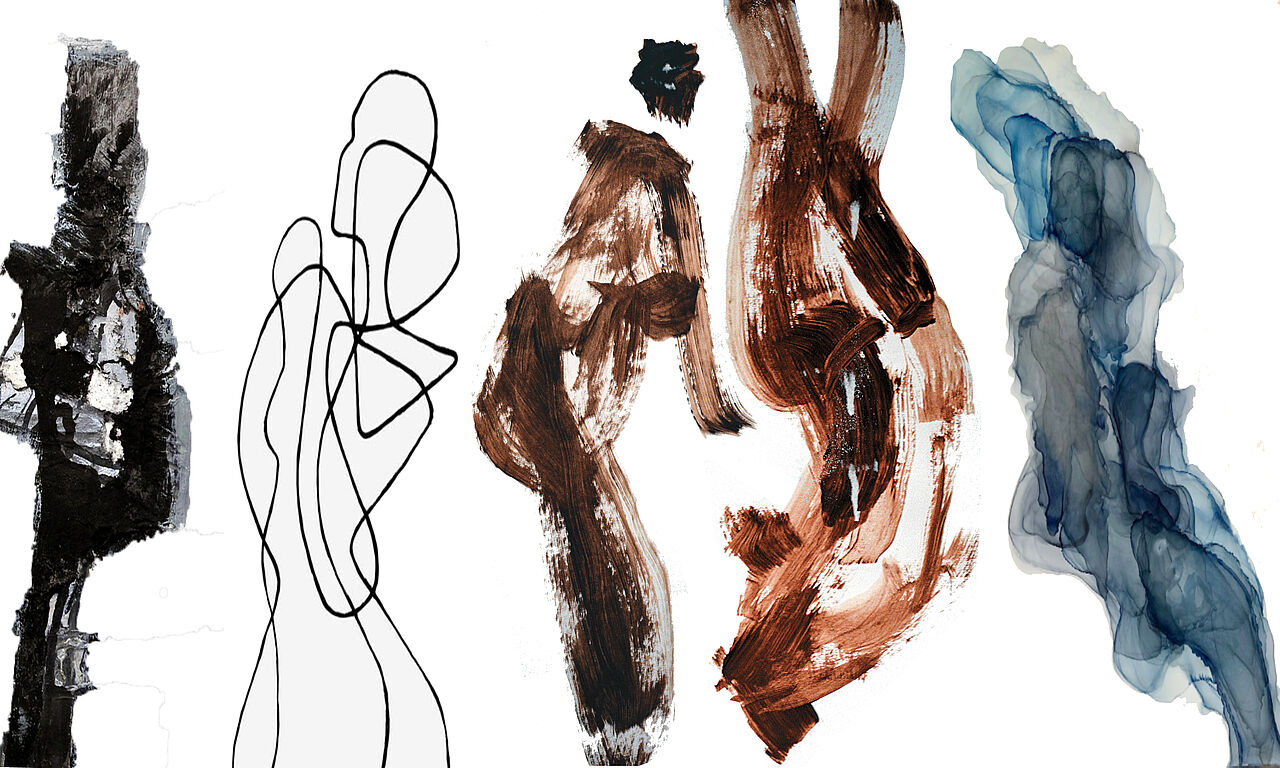 Atelier de peinture mêlant sons et images. Un musicien crée des rythmes au djembé, à la caisse claire et à la cloche. Les participants explorent la matière sonore et la traduisent en formes, matières et couleurs à partir d’un modèle vivant en mouvement.
