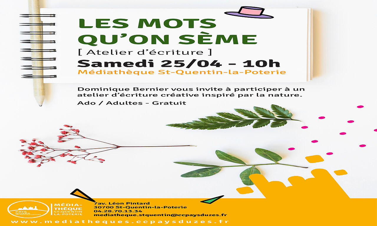 Culture, Initiation / découverte dans le cadre d'un événement, Saint-Quentin-la-Poterie:Atelier d'écriture - Les mots qu'on sème