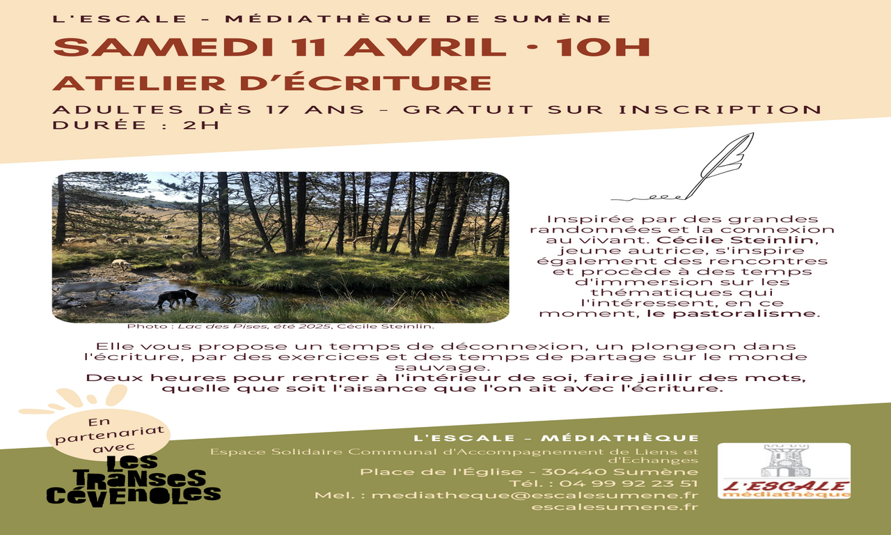 Dans le cadre du compagnonnage avec la Cie Bitume Sauvage pour la création du spectacle «  Transhumance / Mout’-Mout'  » (titre provisoire), Les Transes Cévenoles et la Médiathèque l’Escale de Sumène vous proposent un atelier d’écriture.