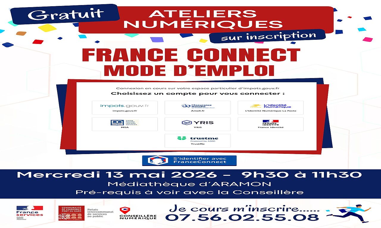 Culture, Ouverture exceptionnelle dans le cadre d'événements ponctuels, Aramon:Atelier numérique - France Connect mode d'emploi