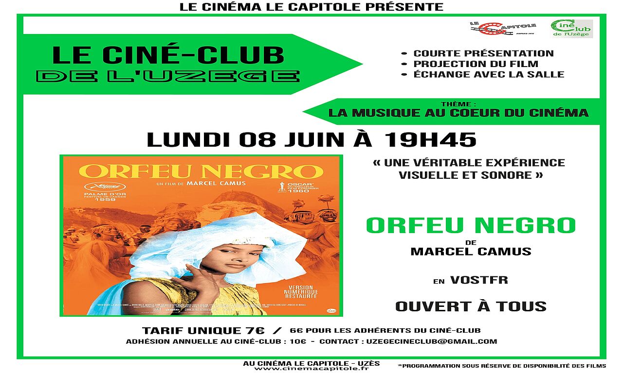 Culture, Séance / Projection cinéma, Uzès:Ciné-Club de l'Uzège - Projection Orfeu negro