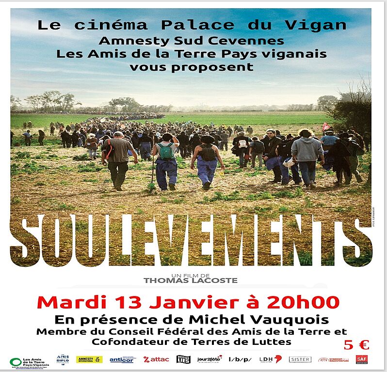 Ciné-débat autour du documentaire de Thomas Lacoste "Soulèvements" en présence de Victor Vauquois des Amis de la Terre, proposé par Amnesty International Sud Cévennes et les Amis de la Terre Pays Viganais