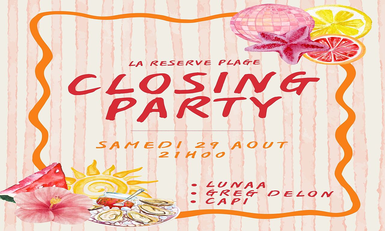 Rejoignez la réserve plage pour une soirée exceptionnelle le vendredi 29 Août à partir de 21h pour finir la saison ensemble !