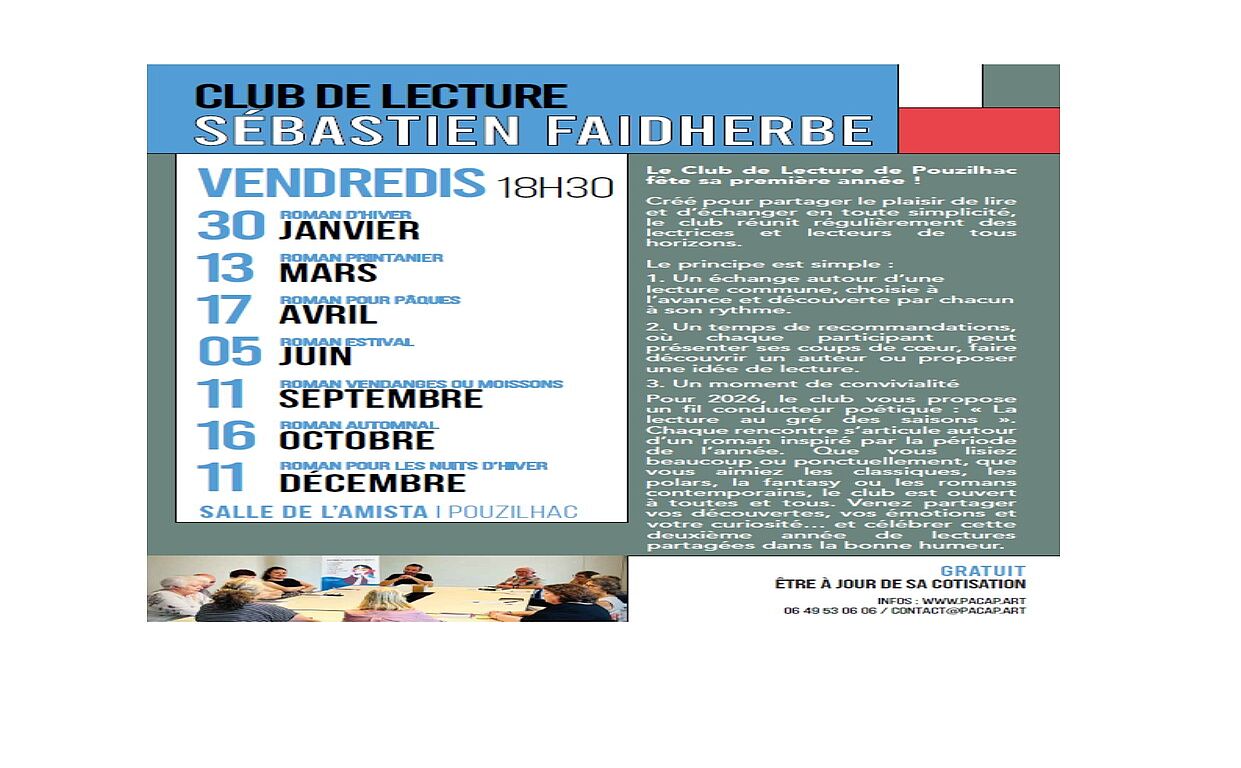 Le club de lecture de la PACAP fête sa première année : pour 2026, le club vous propose un fil conducteur poétique : «  La lecture au gré des saisons  ».