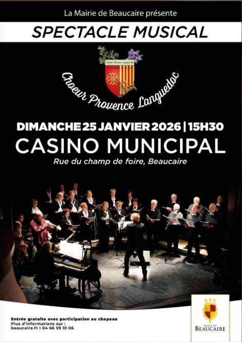 Chorale "CONCERT DU NOUVEL AN" à Beaucaire. Par le chœur Provence Languedoc, mené par le chef de chœur Laurent DECORET, accompagné de la chorale d'Ollioules, menée par Michèle MORUCCI.