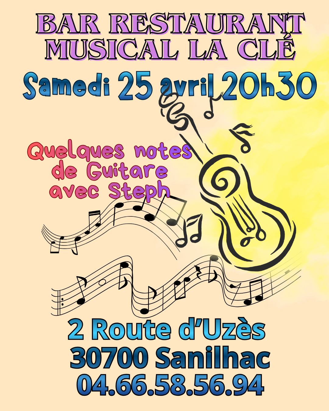 Le restaurant musical La Clé a invité Stephan et sa guitare acoustique pour un concert Pop Rock et une soirée dans la détente autour d'un repas concert. Bar à cocktail ouvert, réservation conseillée.