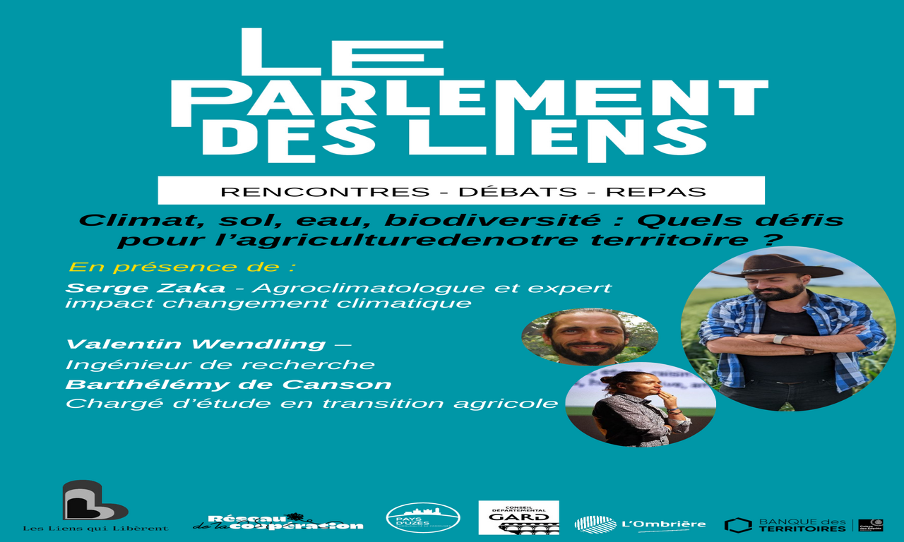 "Climat, sol, eau, biodiversité : quels défis pour l’agriculture de notre territoire ?" Le Parlement des liens avec le Réseau de la coopération vous propose une discussion avec Serge Zaka, Valentin Wendling et Barthélémy De Canson.