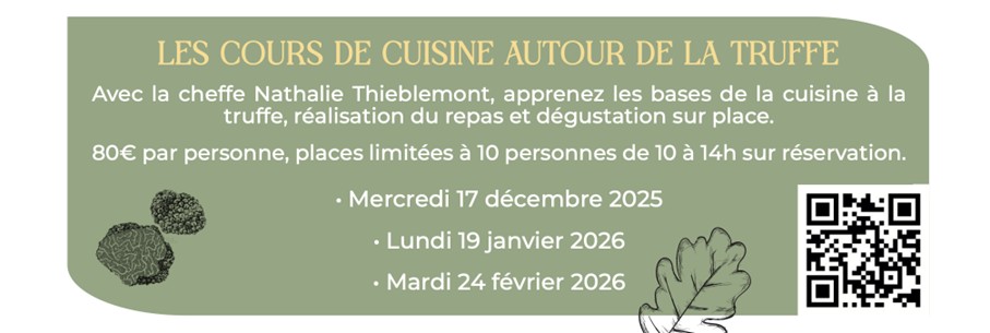 Avec la cheffe Nathalie Thieblemont, apprenez les bases de la cuisine à la truffe, réalisation du repas et dégustation sur place.