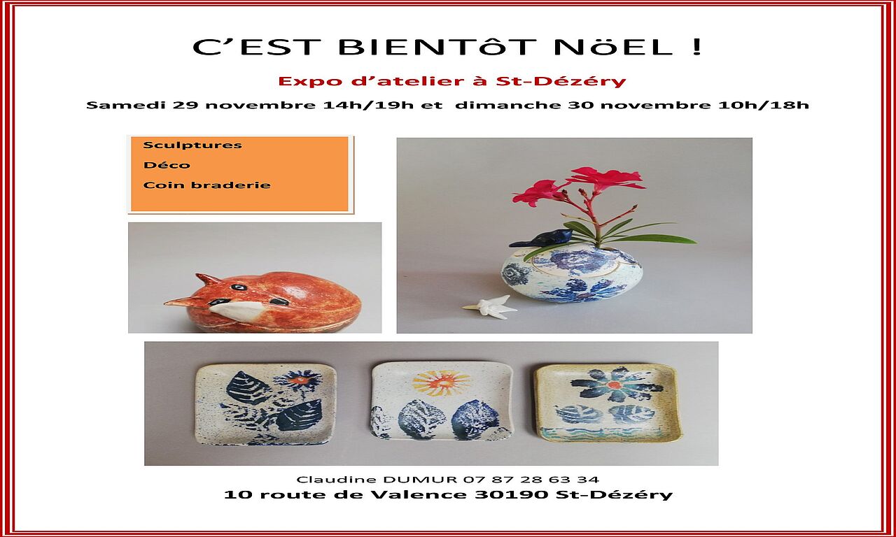 Bientôt Noël ! L'artiste Claudine Dumur expose et vend dans son atelier le temps d'un week-end. Sculptures, décoration, coin braderie : vous trouverez certainement votre bonheur !