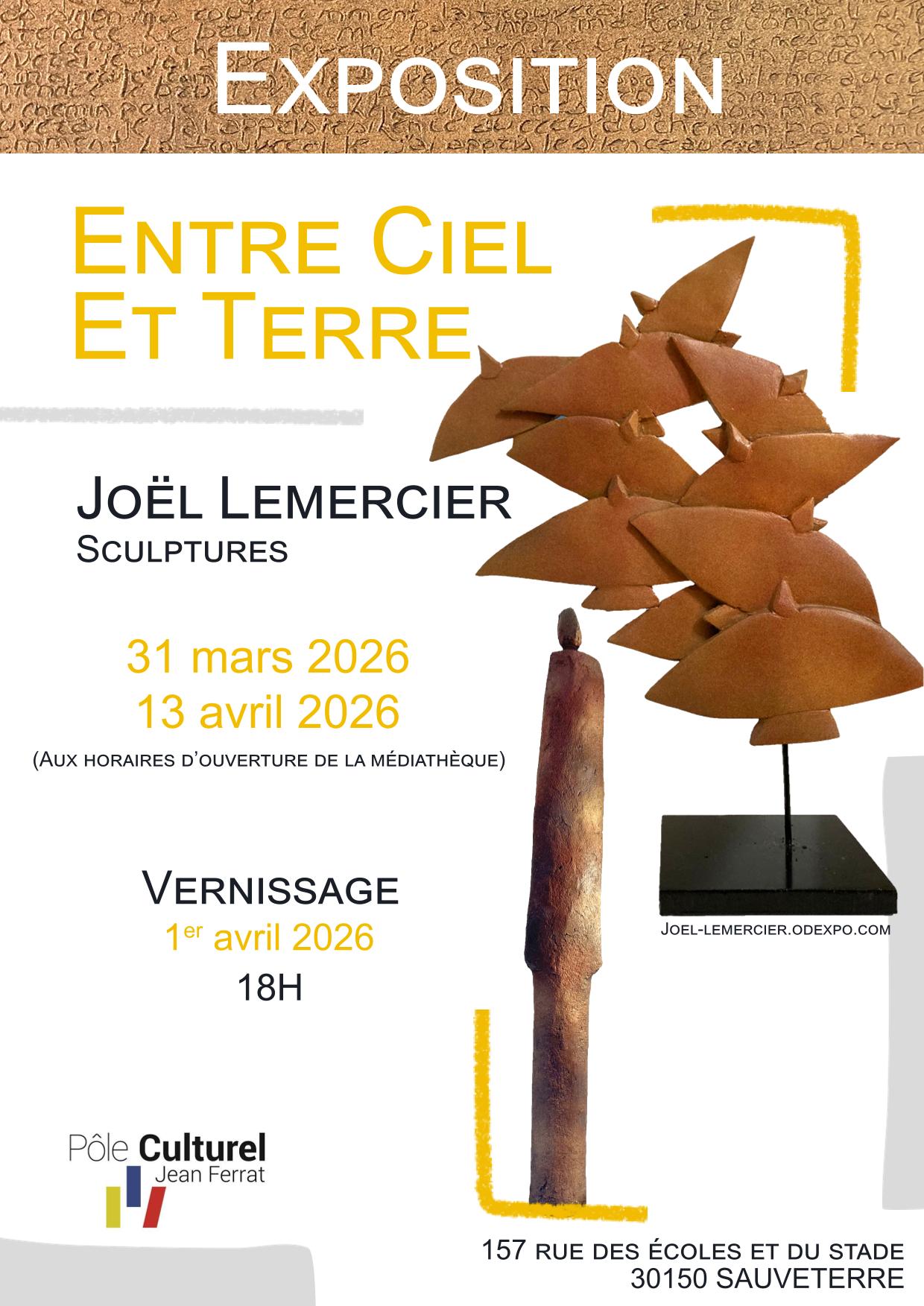 Exposition des œuvres de Joël Lemercier. Selon Joseph Pacini « Joël Lemercier, choisit d’engager le dialogue avec la matière. De l’argile, du bois, de la pierre, de la matière il débusque le souffle. ». Vernissage le 1er avril à 18h.