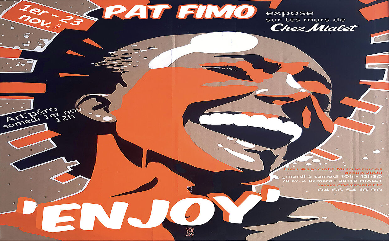 L'association Chez Mialet invite l'artiste PAT FIMO pour son exposition de peinture 'Enjoy', des portraits tout en sourires éclatants portant un message de légèreté et sérénité.