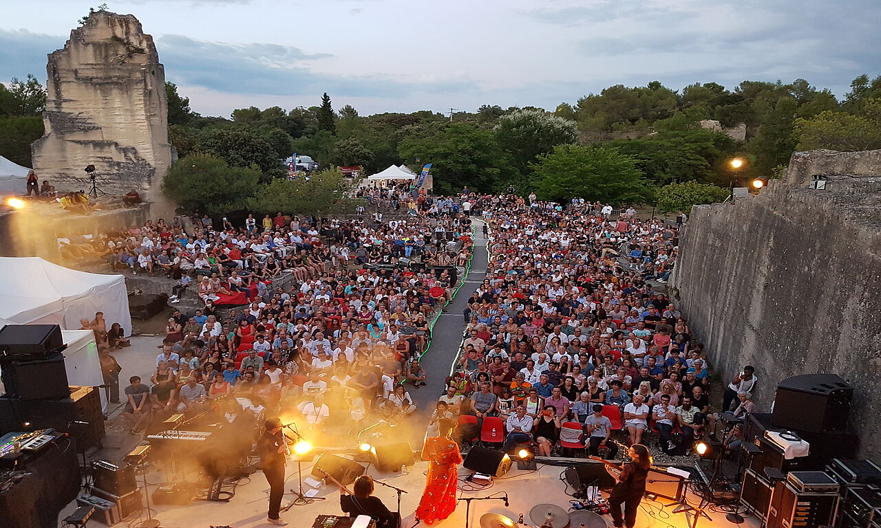 Concerts de jazz, stages de musiques et rencontres dans le village et dans les Carrières du Bon Temps.