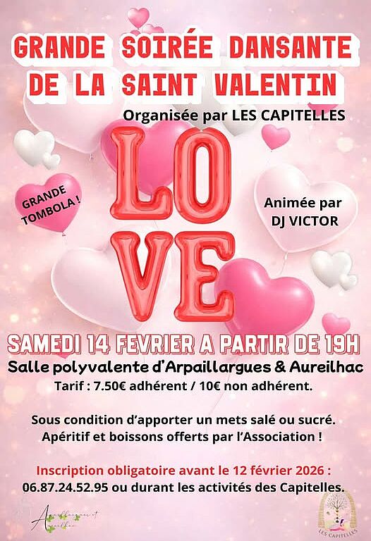 Que vous ayez ou pas un Valentin ou une Valentine, Les Capitelles vous invitent à partager une grande soirée dansante de la Saint-Valentin ! L'animation musicale sera assurée par DJ Victor, qui promet une ambiance festive et conviviale toute la soirée !