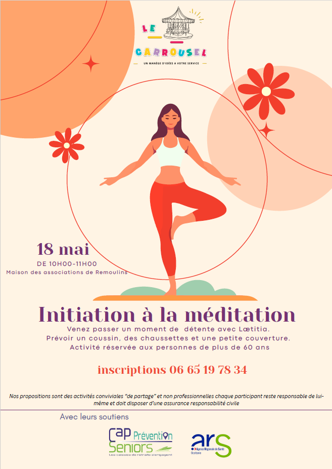 Le Carrousel propose une initiation à la méditation avec Lætitia, pour apprendre à se détendre et à respirer en douceur. Activité réservée aux +60 ans, sur réservation.
