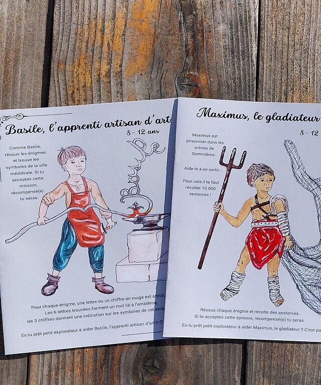Basile, artisan d'art est un jeu de piste en lien avec les métiers de la forge et de la pierre. Maximus, le gladiateur est en lien avec l'antiquité.