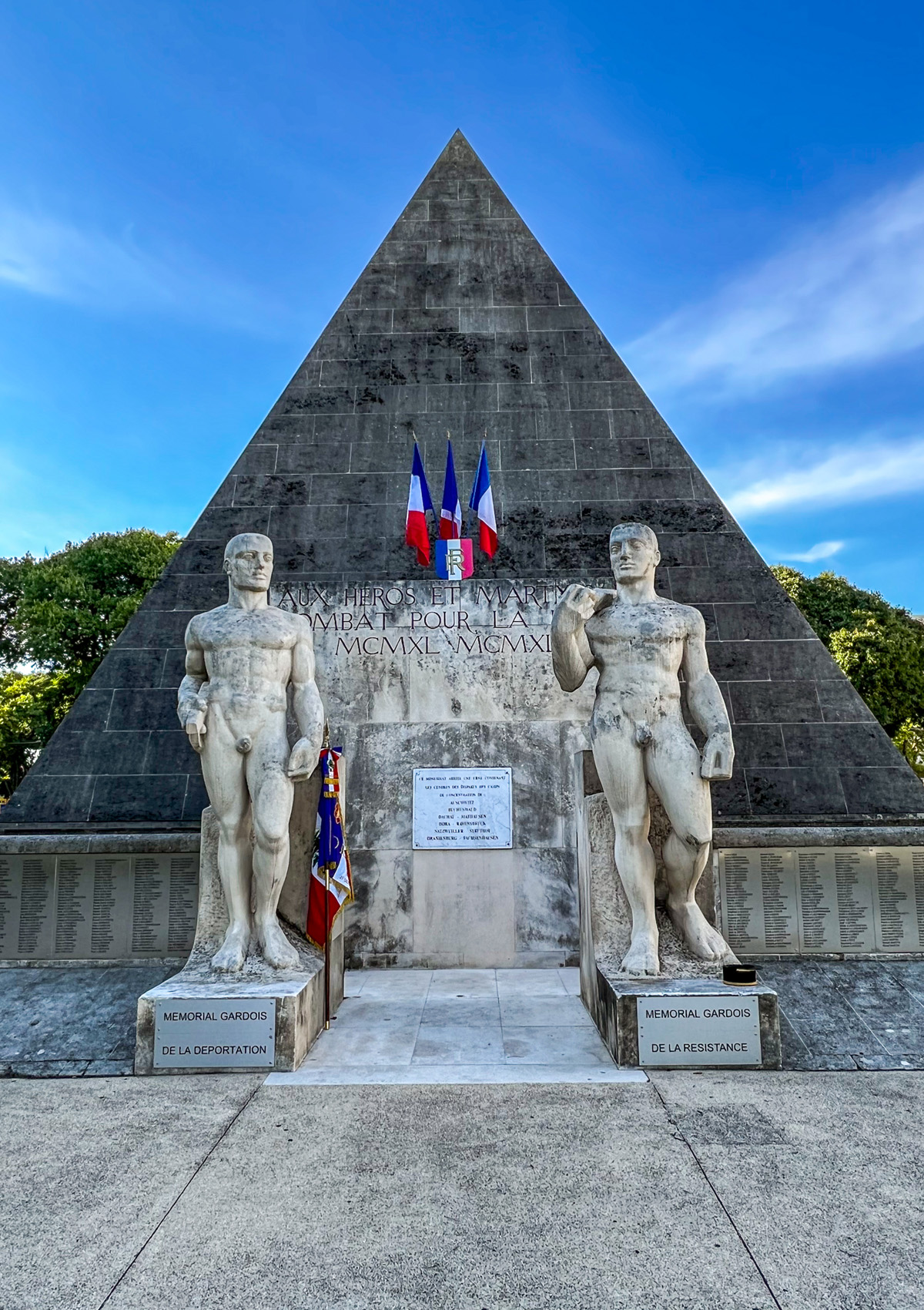 Cette étonnante pyramide a été réalisée en 1954 comme mémorial départemental des martyrs de la Résistance.