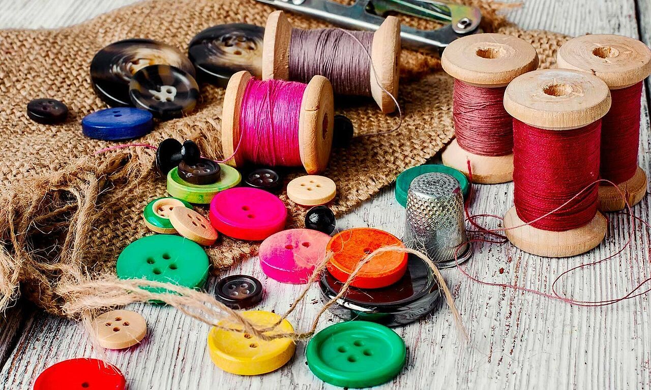 Créations de coutures décoratives (coussins, nappes, trousses de maquillage, serviettes, peignoirs personnalisés, sets de table, etc.) réalisées par les salariés de l’association d’insertion.