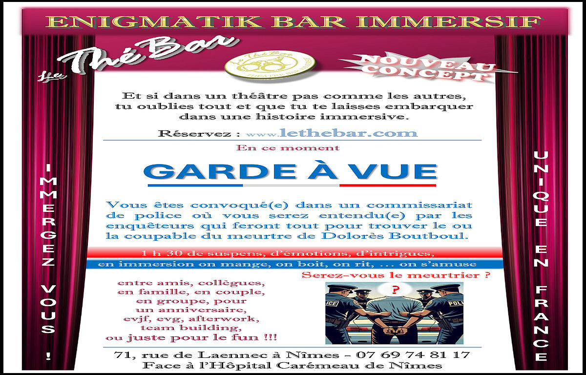Distractions et loisirs, Dîner / Repas spectacle, Nîmes:le ThéBar présente : Garde à Vue