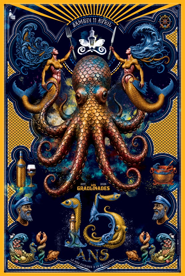 Les Graulinades, c'est des plats cuisinés en public par des habitants du Grau du Roi, par des restaurateurs et par des chefs. Pour relever le tout, on plante un décor : les fourneaux éphémères sont installés en extérieur face à la mer le long des quais.