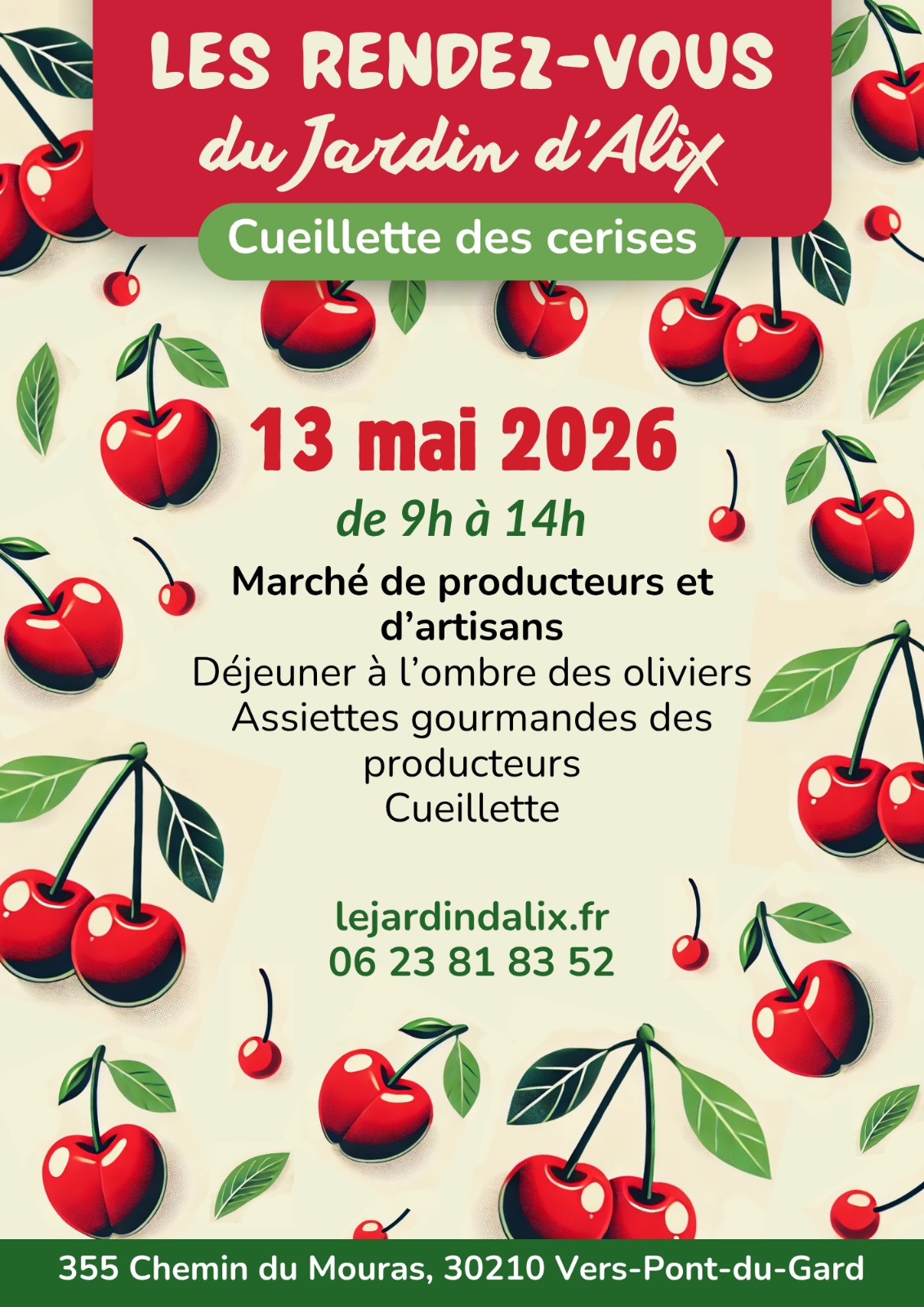 Le Jardin d'Alix vous donne rendez-vous pour une matinée gourmande autour de la cueillette des cerises !