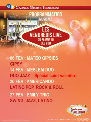 Les Vendredis Live du Casino Flamingo : des concerts live chaque vendredi dès 20h, dans une ambiance festive et conviviale