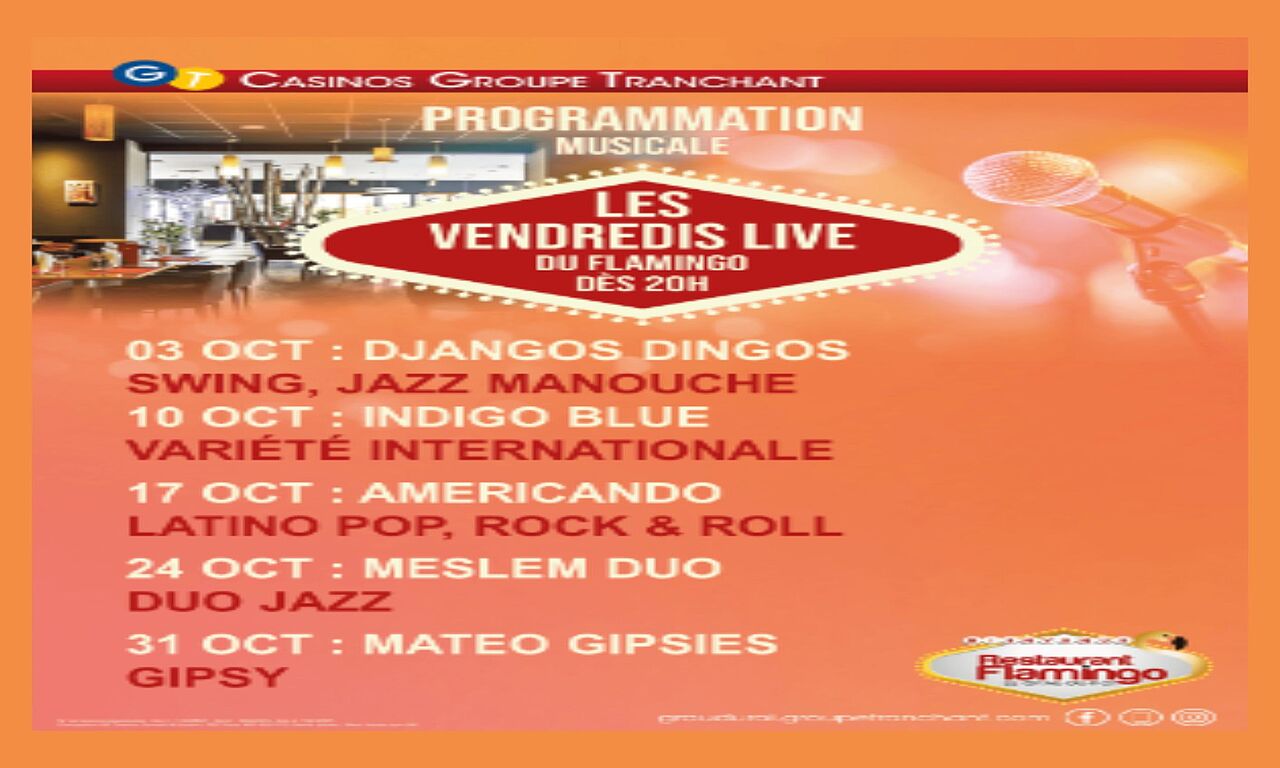 Les Vendredis Live du Casino Flamingo : des concerts live chaque vendredi dès 20h, dans une ambiance festive et conviviale