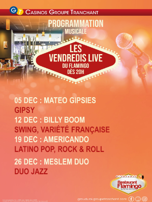 Les Vendredis Live du Casino Flamingo : des concerts live chaque vendredi dès 20h, dans une ambiance festive et conviviale
