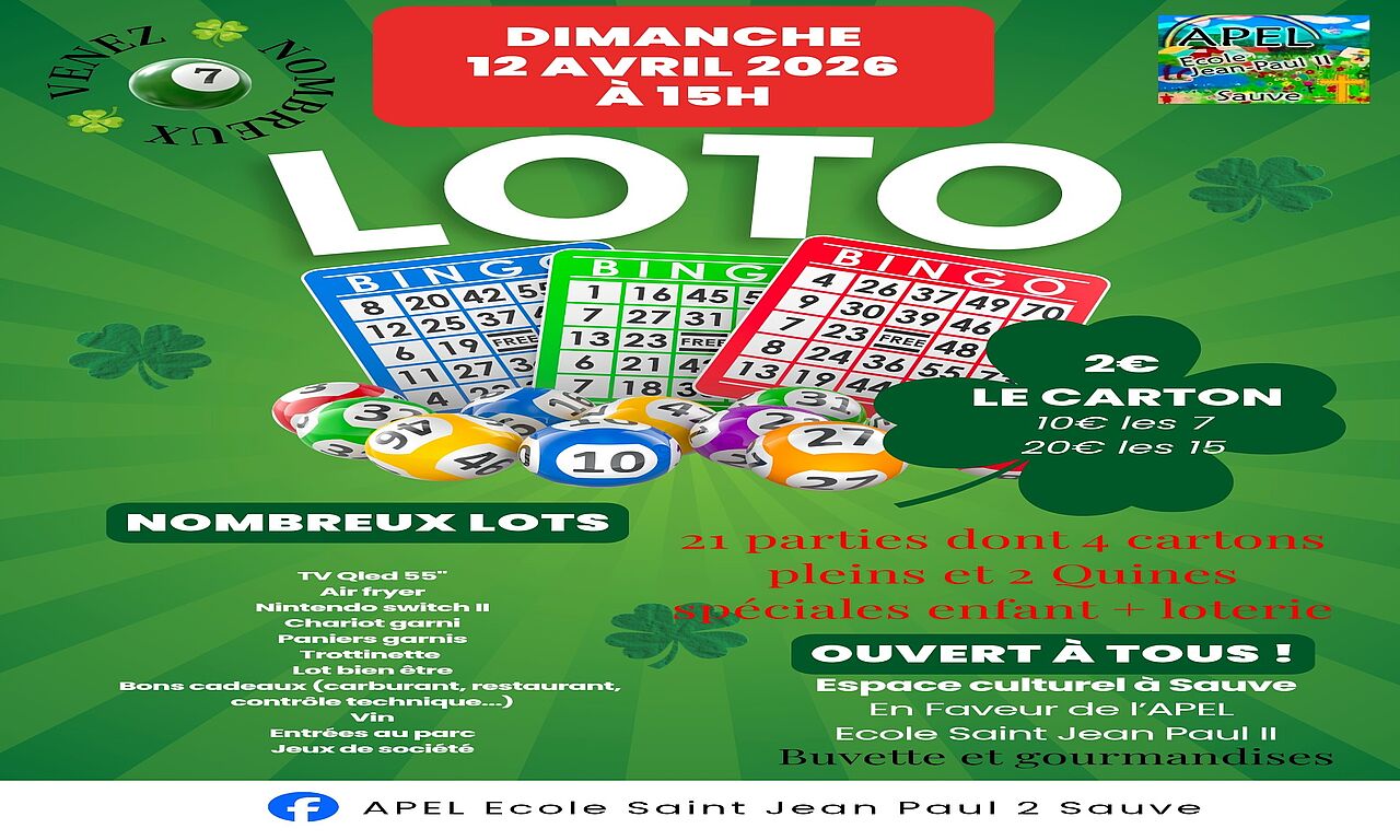 Distractions et loisirs, Loto, Sauve:Loto APEL Ecole Jean Paul 2