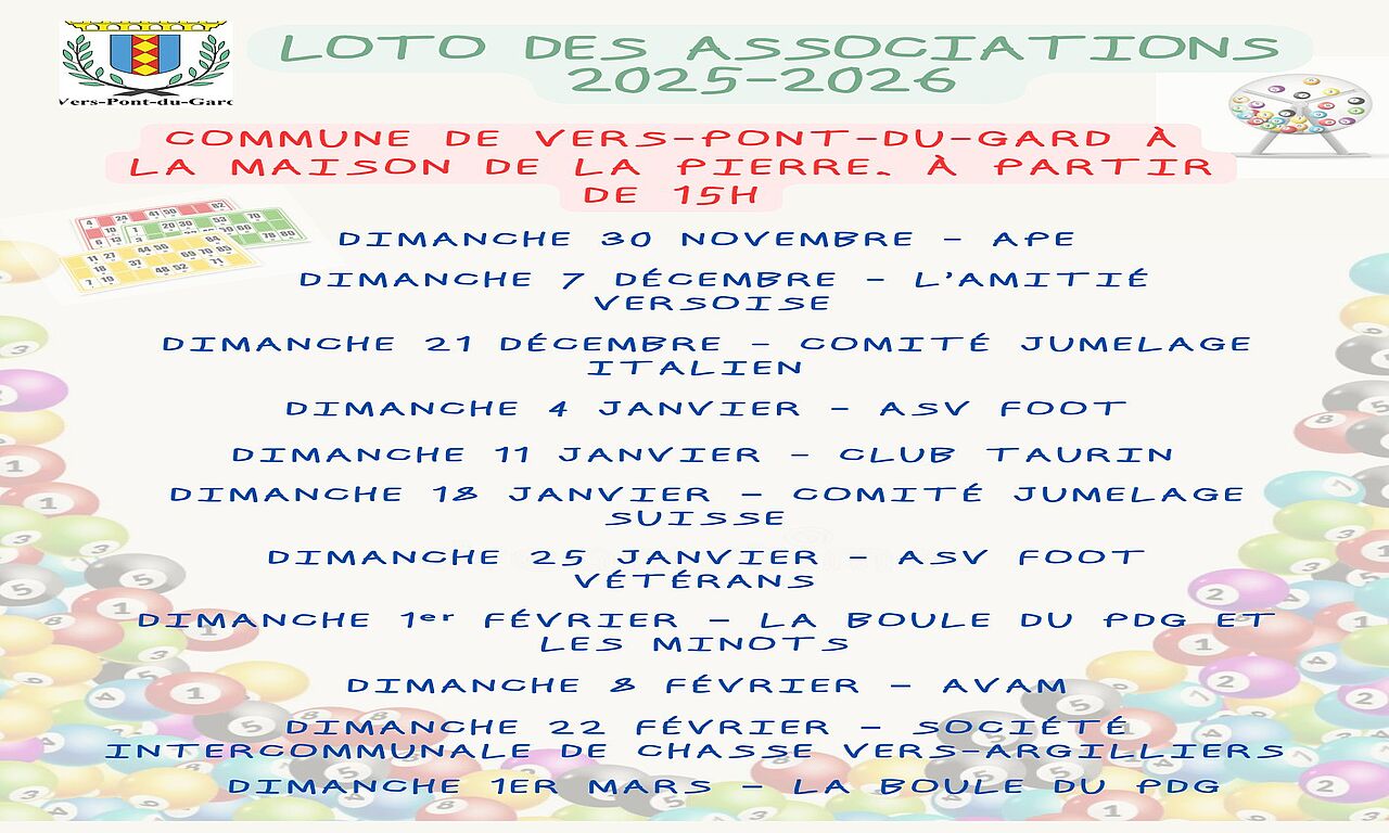 Distractions et loisirs, Loto, Vers-Pont-du-Gard:Loto des Associations
