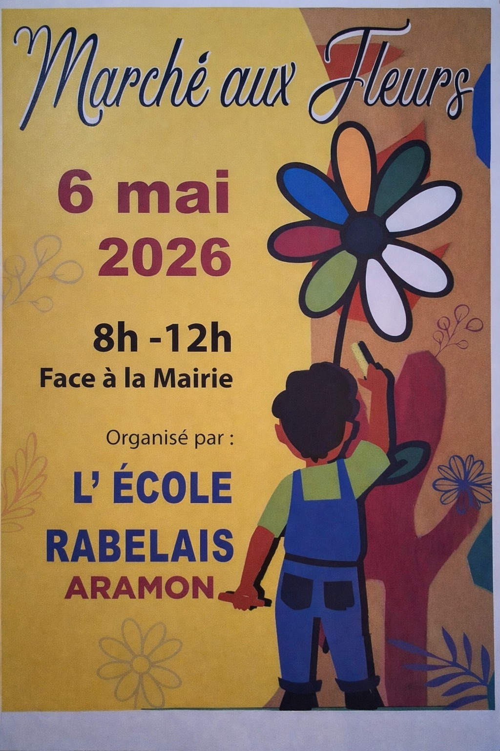 Le printemps s’invite sur la place : l'école Rabelais organise un marché aux fleurs. Rendez-vous pour un moment convivial et coloré autour des fleurs et des plantes. Plants, fleurs, idées jardin… de quoi faire le plein de nature et de bonne humeur !