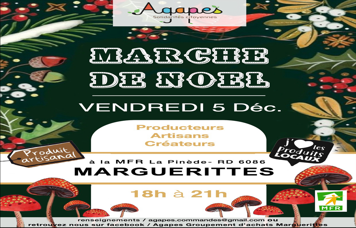 L’association Solidarité Citoyenne AGAPES organise son marché de Noël à la MFR La Pinède à Marguerittes.