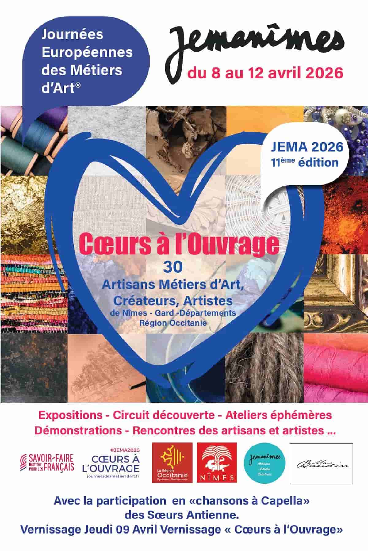 À l’occasion des Journées européennes des métiers d’art, l’association Jemanîmes organise un parcours dans la ville pour la 11e édition. Venez découvrir les artisans, créateurs, artistes : expositions, ateliers pour valoriser le savoir-faire d'ici.