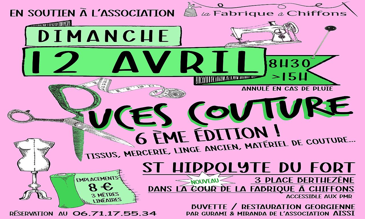 Manifestations commerciales, Brocante, Marché aux puces, Vente à emporter, Saint-Hippolyte-du-Fort:Puces Couture de la Fabrique à Chiffons