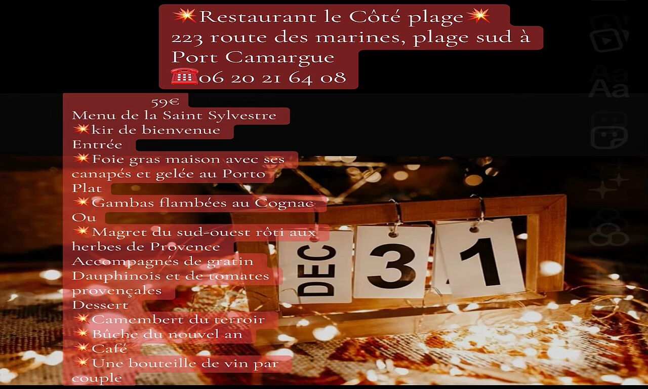 Le Côté Plage vous invite à vivre un réveillon inoubliable à Port Camargue, au cœur d’un cadre enchanteur, face à la mer.