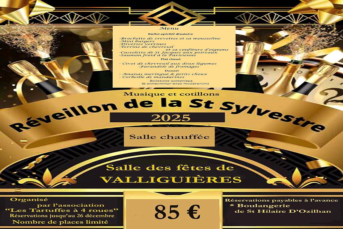Les Tartuffes à 4 roues vous proposent une soirée Réveillon du Nouvel an ! Au programme : buffet, apéritif, plat, fromage, dessert, cotillon, boissons, danse … et bonne humeur !