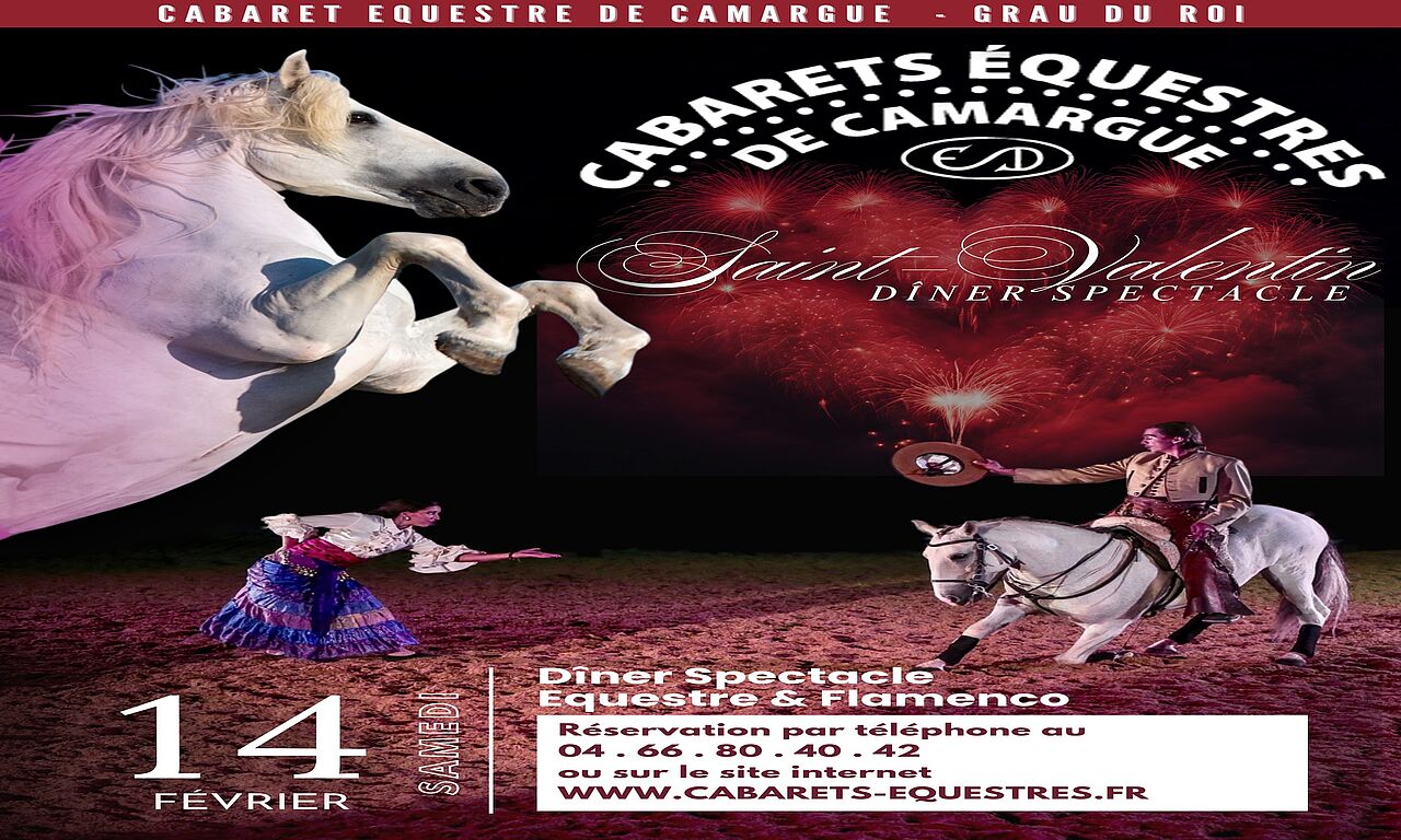 "Pour une Saint-Valentin inoubliable, offrez à votre moitié une soirée magique au Cabaret Équestre de Camargue,