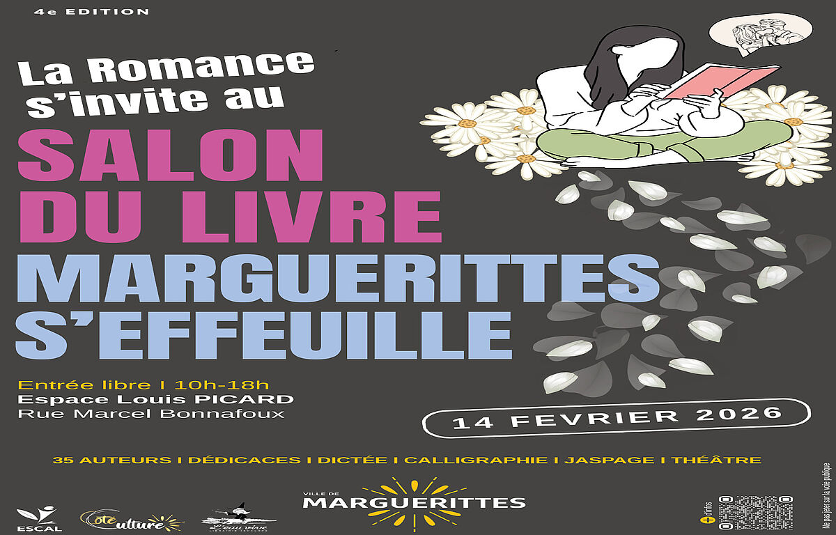Marguerittes célèbre le plaisir de lire et l'amour avec la 4ème édition du Salon du livre "Marguerittes s'effeuille". 35 auteurs et autrices réparti(e)s sur 8 plateaux y prendront place et la romance y sera mise en lumière !