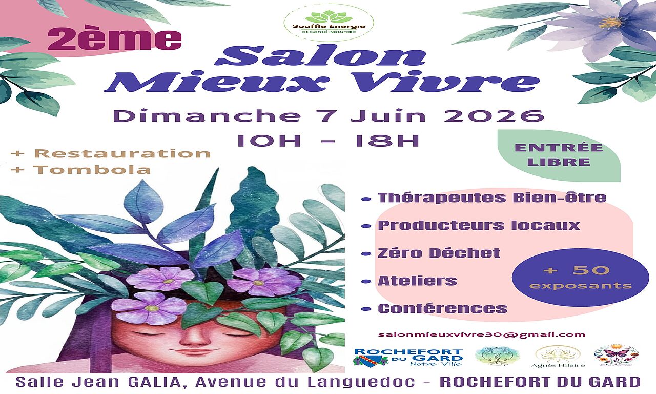 Salon Mieux Vivre : un rendez-vous dédié au bien être ! Découvrez thérapeutes, artisans, producteurs et associations engagés. Un rendez-vous local, convivial et zéro déchet, pour prendre soin de soi et des autres, à tout âge.