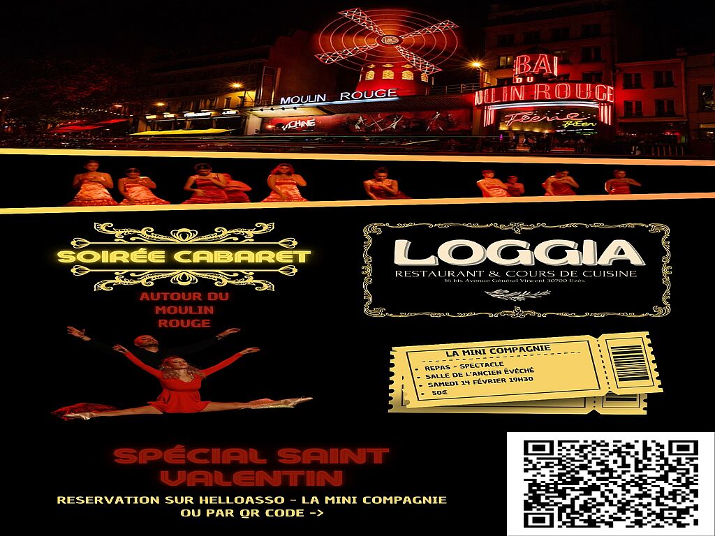 Le restaurant Loggia et la mini compagnie vous proposent une soirée repas-spectacle, autour du Moulin Rouge. Venez fêter la St Valentin en musique !
