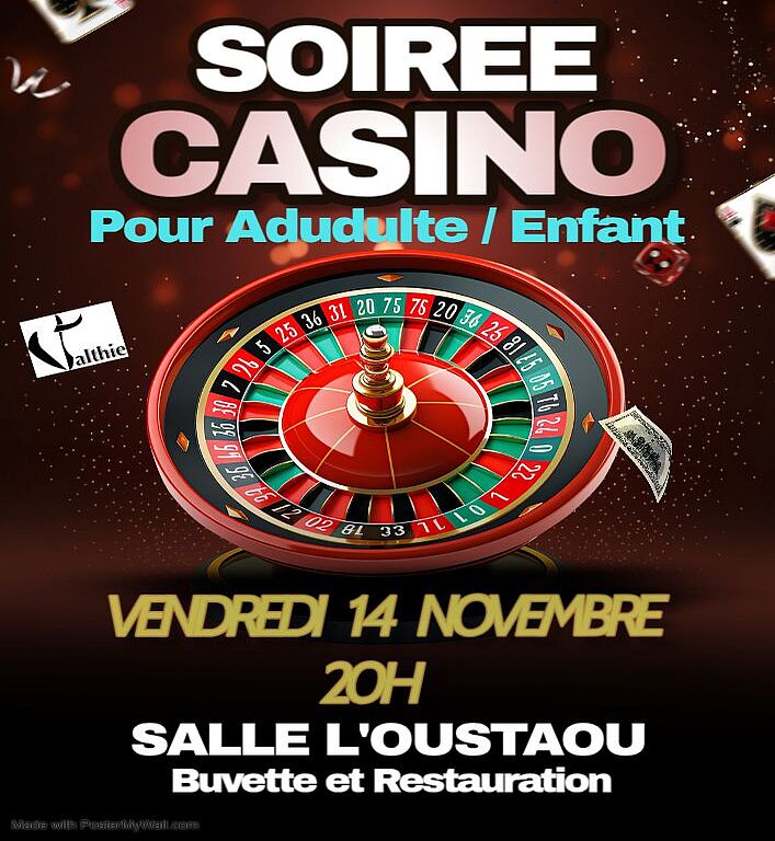L'association Valthie vous invite à une soirée casino de folie. Adultes, enfants, familles… Venez passer un moment festif et chaleureux autour des tables de roulette, blackjack, poker et bien d’autres jeux.