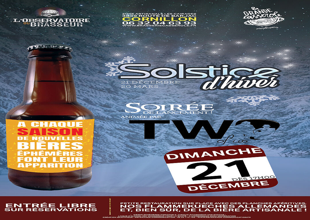 Distractions et loisirs, Dégustation, Cornillon:Soirée de lancement à la Brasserie de la Grande Casserole : solstice d'hiver