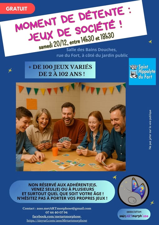 Venez vous détendre, vous changer les idées, découvrir des personnes et des jeux !