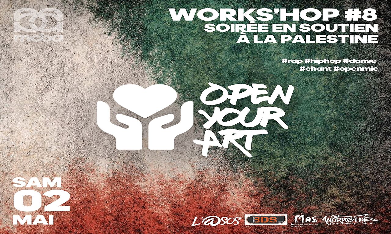 Une soirée autour des cultures urbaines avec l'association Works'hop. Plusieurs groupes et artistes sur scène, des concerts et pas que. La soirée se clôturera avec le traditionnel open mic, où chacun est libre de venir interpréter ses textes et compos.