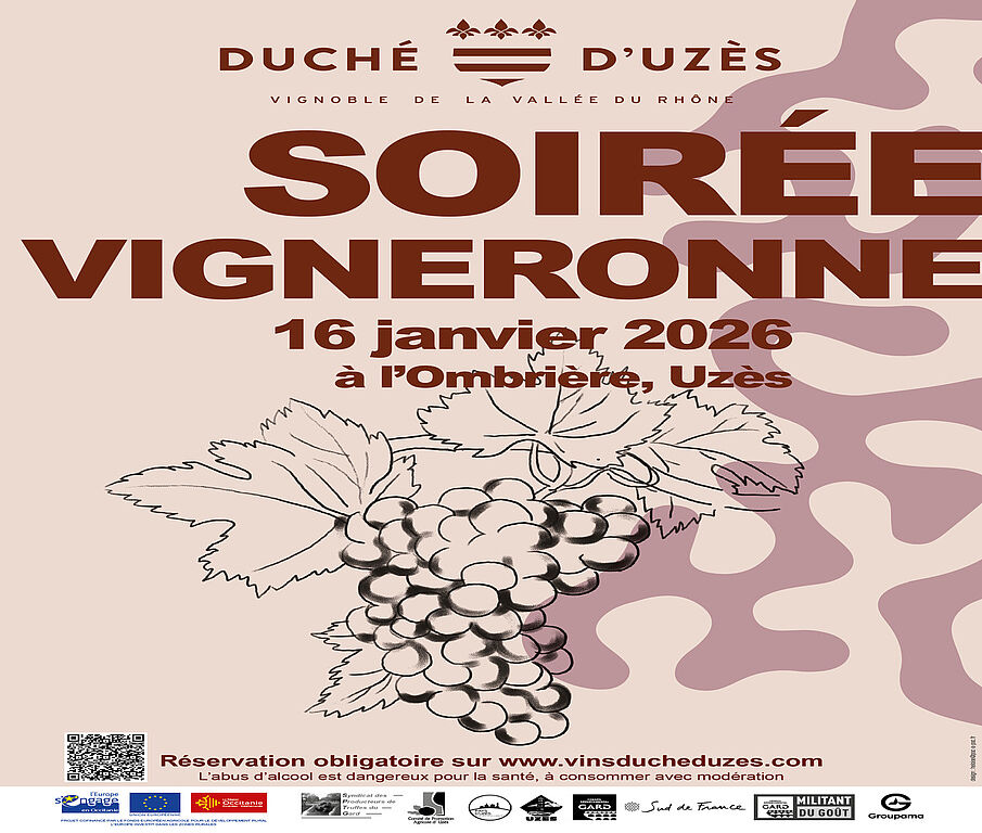 La Soirée Vigneronne inaugure le Week-End de la Truffe d’Uzès : vins du Duché d’Uzès et mets truffés (volaille, cannelés, feuilletés…). Un rendez-vous gourmand et convivial à ne pas manquer !