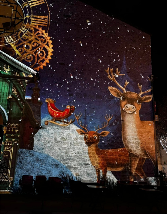 Projection d’images vidéo animées sur la façade de l’Espace Saint-Pons. Un univers poétique qui s’adresse à tous les publics.