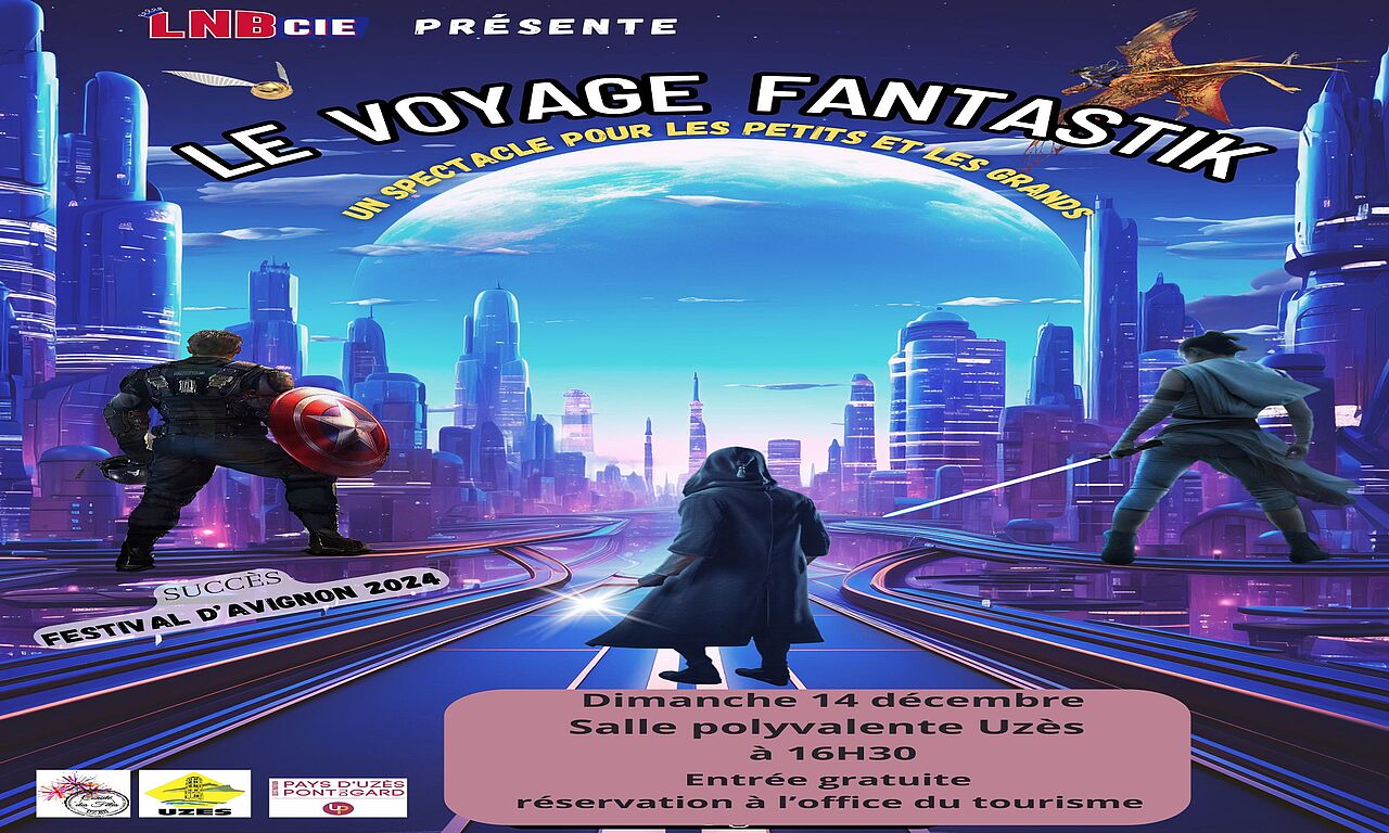 À l'occasion des fêtes de fin d'année, le comité des fêtes d'Uzès vous invite à assister au spectacle "Le Voyage Fantastik". Fans inconditionnels des Avengers, de Harry Potter, de Star Wars ou même d'Avatar, ce spectacle est fait pour vous !